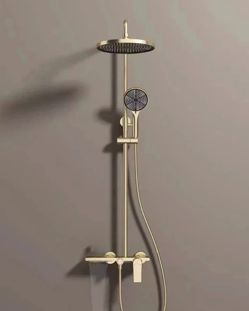 Colonne Douche Thermostatique Laiton Massif Or Brossé Tête Ronde 30cm